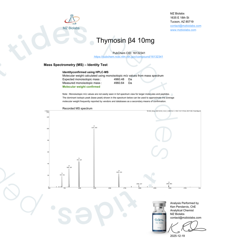 - Inflammation and immune regulation Used to analyze how Thymosin Beta-4–related peptides influence inflammation.